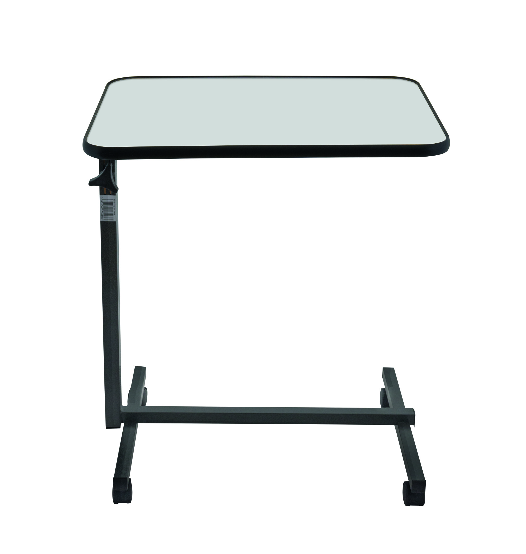 Der Beistelltisch besitzt vier Laufrollen mit denen der Tisch ganz einfach, ohne jeden Kraftaufwand in jede gewünschte Richtung gefahren werden kann. Zwei der Laufrollen sind mit Feststellbremsen ausgestattet, welche das Wegrollen des Tisches verhindern.