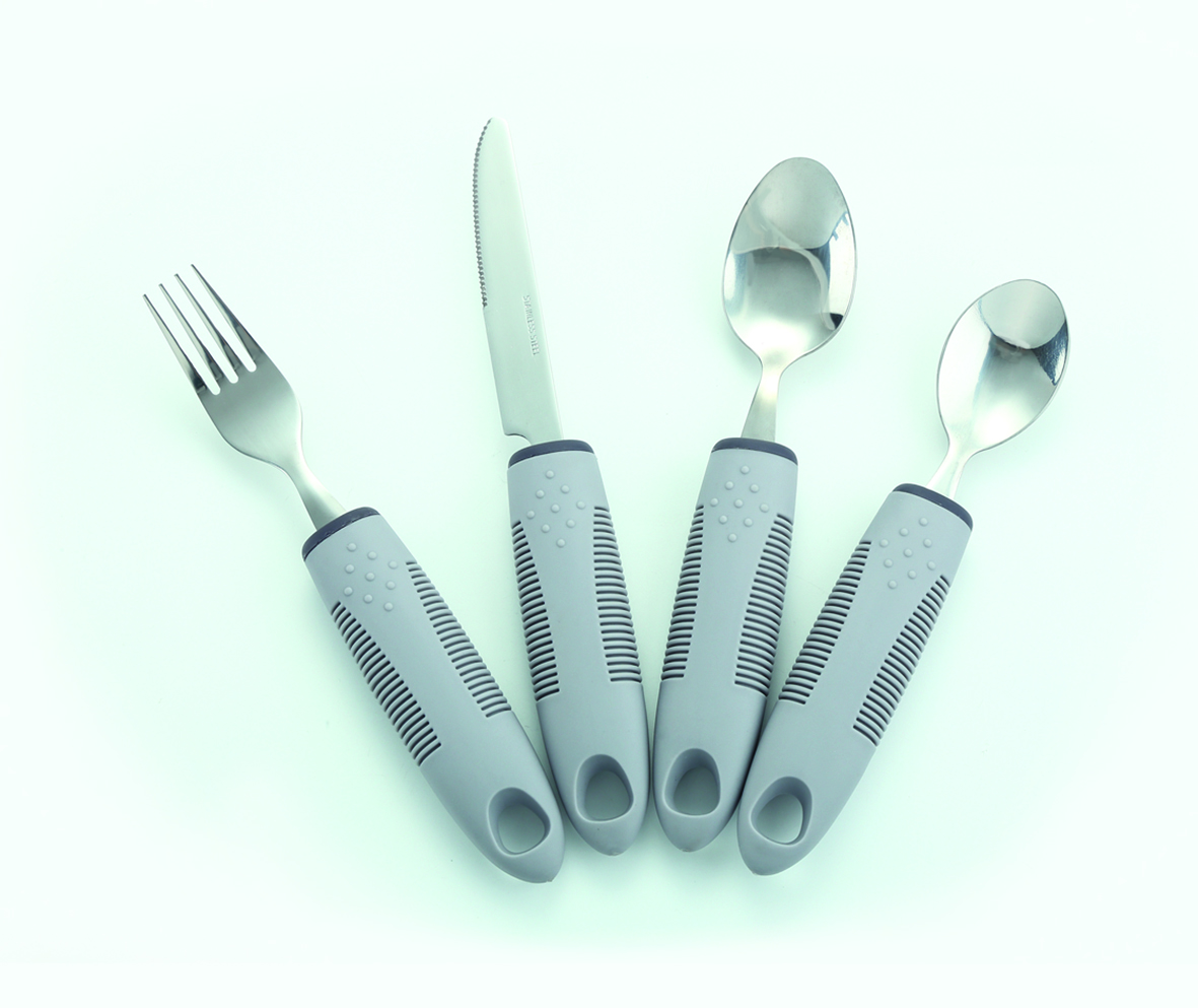 Dank des großen Softgriffs mit rutschfester Gummierung liegt jedes Besteckteil sicher und bequem in der Hand. Der ergonomische Griff aus TPR-Material in Grau-Schwarz sorgt für einen festen Halt, selbst bei eingeschränkter Handkraft oder feuchten Händen. Die Besteckköpfe aus hochwertigem Edelstahl bieten Langlebigkeit, Stabilität und ein modernes Erscheinungsbild.