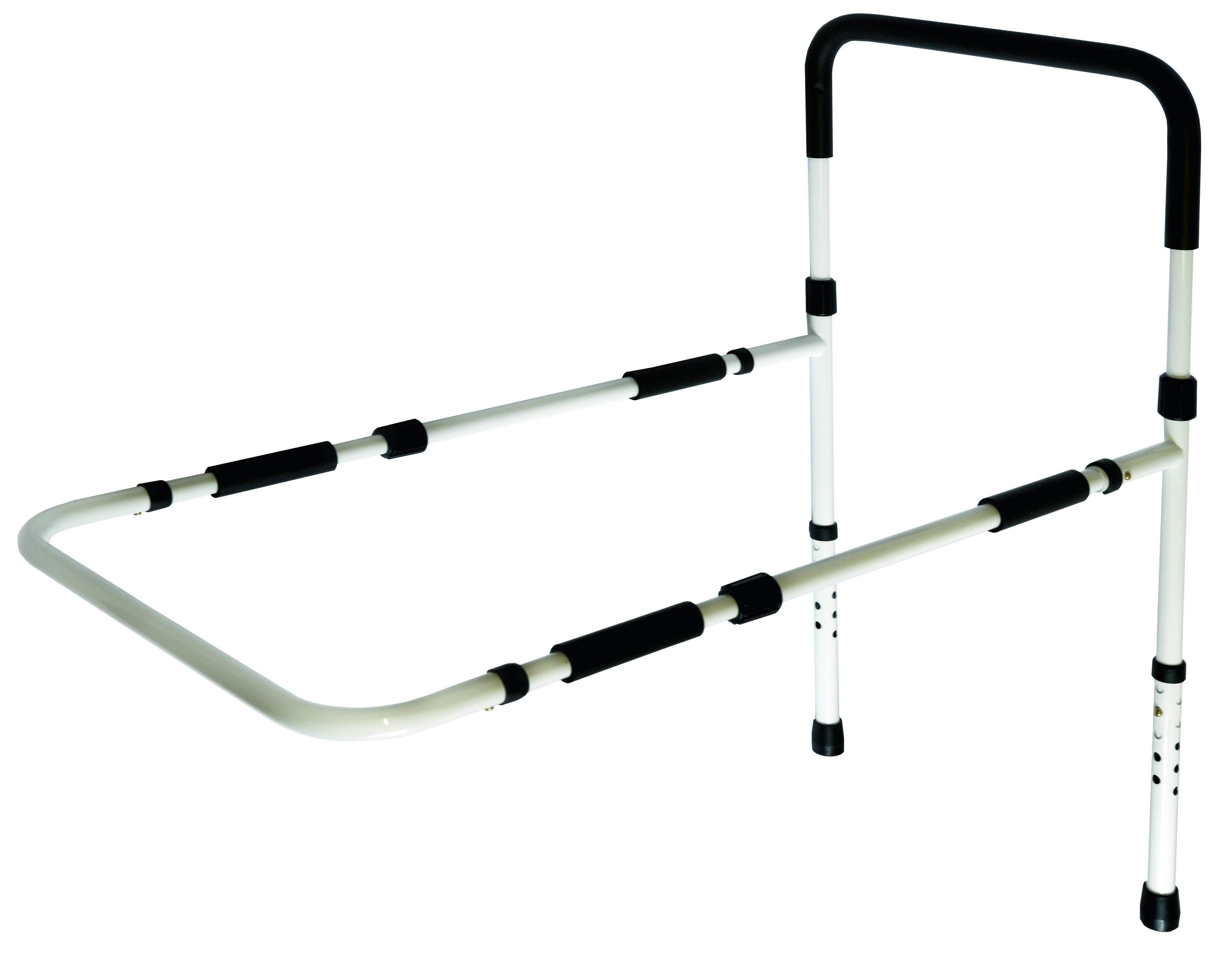 Die Maße lassen sich vielseitig anpassen: Die Länge ist stufenlos von 88–112 cm einstellbar, die Gesamthöhe von 77,5–94 cm, die Handgriffhöhe in 3 Stufen von 34,5–40 cm und das Unterteil in 10 Schritten von ca. 42–54 cm. Mit einer Breite von 50 cm, einem Gewicht von 3,6 kg und einer maximalen Belastbarkeit von 114 kg ist der Bettgriff besonders robust und dennoch leicht zu handhaben.