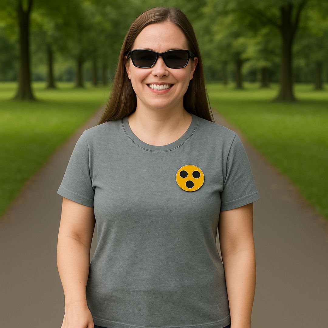 Diese runde Blindenplakette aus Metall dient als gut erkennbare und zuverlässige Kennzeichnung für blinde und sehbehinderte Personen. Mit einem Durchmesser von ca. 30 mm ist sie kompakt, aber dennoch deutlich sichtbar. Die stabile Sicherheitsnadel ermöglicht eine einfache und sichere Befestigung an Kleidung, Taschen oder Zubehör – ohne Verrutschen und ohne Beschädigung des Stoffes.