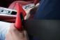 Des Weiteren kann das kleine Messer, welches zum Schutz vor Verletzungsgefahr in einer Vertiefung liegt, im Falle eines Unfalls zum Zerschneiden des Sicherheitsgurtes verwendet werden und das Metallende kann als Notfallhammer eingesetzt werden.