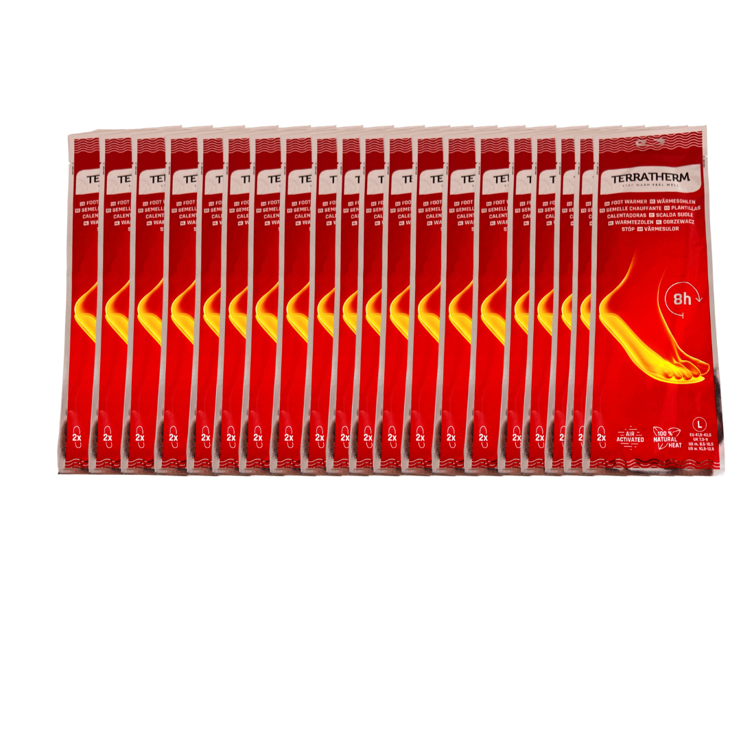 Terratherm Wärmesohlen 20 STÜCK Gr.41,5-43,5 Sohlenwärmer Fußwärmer Einlegesohlen 8h