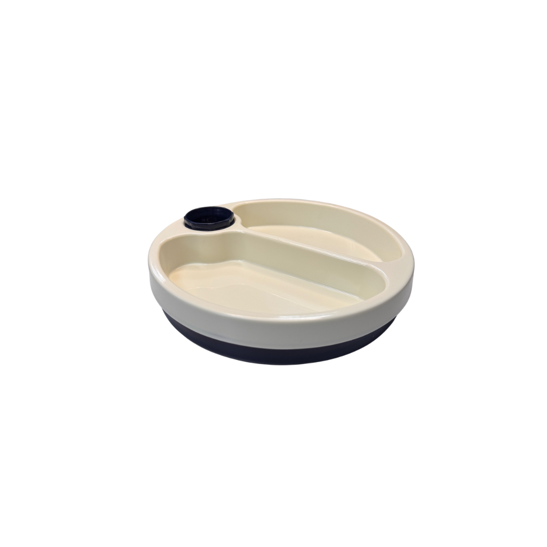 Dieser praktische Warmhalteteller aus robustem Kunststoff ist ideal, um Mahlzeiten länger warmzuhalten – perfekt für Kinder, Senioren oder Menschen, die sich beim Essen Zeit lassen. Dank des 2-geteilten Essbereichs können Speisen getrennt serviert werden. Über den großen Einfüllstutzen lässt sich heißes Wasser einfach einfüllen, sodass der Teller den Inhalt angenehm warmhält. Der Schraubverschluss dient zusätzlich als Eierbecher, was den Teller besonders vielseitig macht. Mit einem Durchmesser von ca. 22 cm und einer Höhe von etwa 3,5 cm bietet der Teller ausreichend Platz für eine ausgewogene Mahlzeit. Der Warmhalteteller ist mikrowellengeeignet und spülmaschinenfest, was ihn besonders pflegeleicht und alltagstauglich macht.