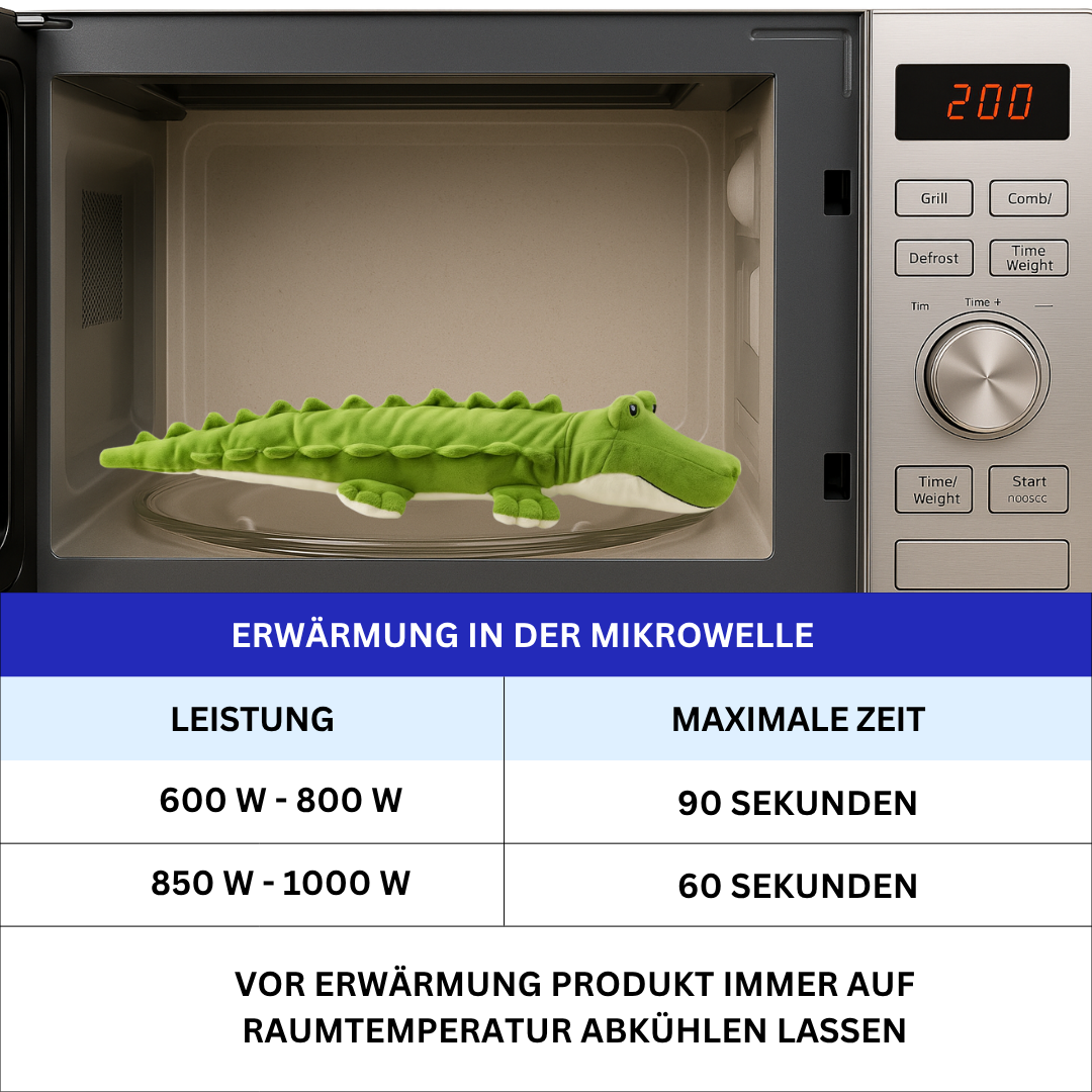 Das Warmies® Krokodil ist der ideale Begleiter für kuschelige Wärme und entspannte Momente! Gefüllt mit einer naturreinen Hirsekorn-Kräuter-Mischung verbreitet es beim Erwärmen in der Mikrowelle einen sanften, beruhigenden Lavendelduft. Dank seiner Länge von ca. 48 cm passt sich das niedliche Krokodil flexibel an Körperstellen wie Nacken, Schultern oder Bauch an und sorgt für wohltuende Wärme, wann immer sie gebraucht wird.